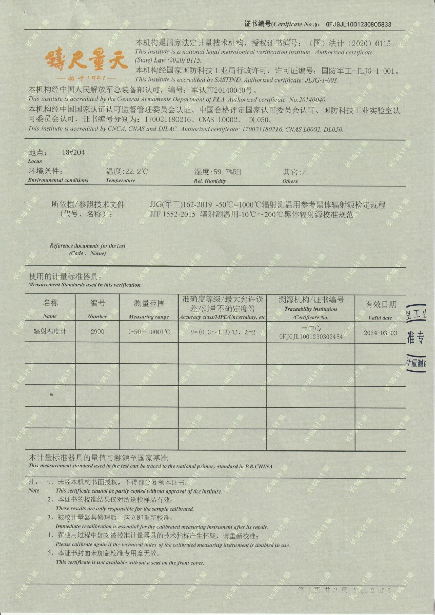 | 上一條:廣西航拓計(jì)量檢測(cè)有限公司-溫濕度巡檢儀、工業(yè)熱電偶 | 下一條:高精度制冷恒溫槽(-80~100℃)校準(zhǔn)證書 |