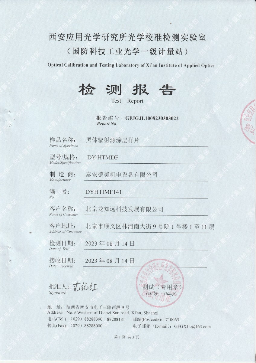 | 上一條:北京龍知遠(yuǎn)科技發(fā)展有限公司-黑體輻射源涂層樣片DYHT1MF140檢測報(bào)告 | 下一條:高精度制冷恒溫槽(-80~100℃)校準(zhǔn)證書 |