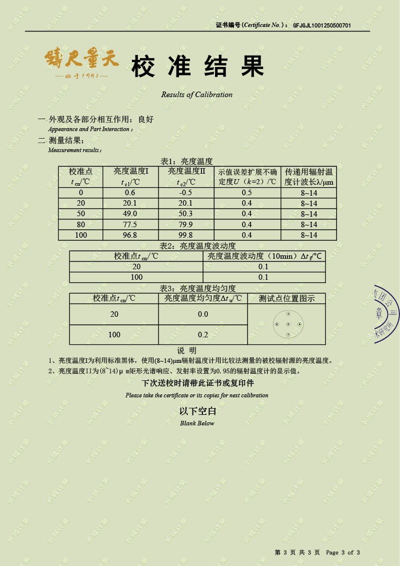 | 上一條:熱工自動(dòng)檢定系統(tǒng)校準(zhǔn)證書(shū) | 下一條:高精度制冷恒溫槽(-80~100℃)校準(zhǔn)證書(shū) |