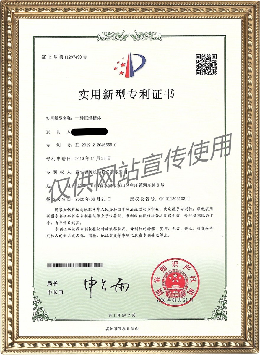 一種恒溫槽體——實(shí)用新型專(zhuān)利證書(shū)