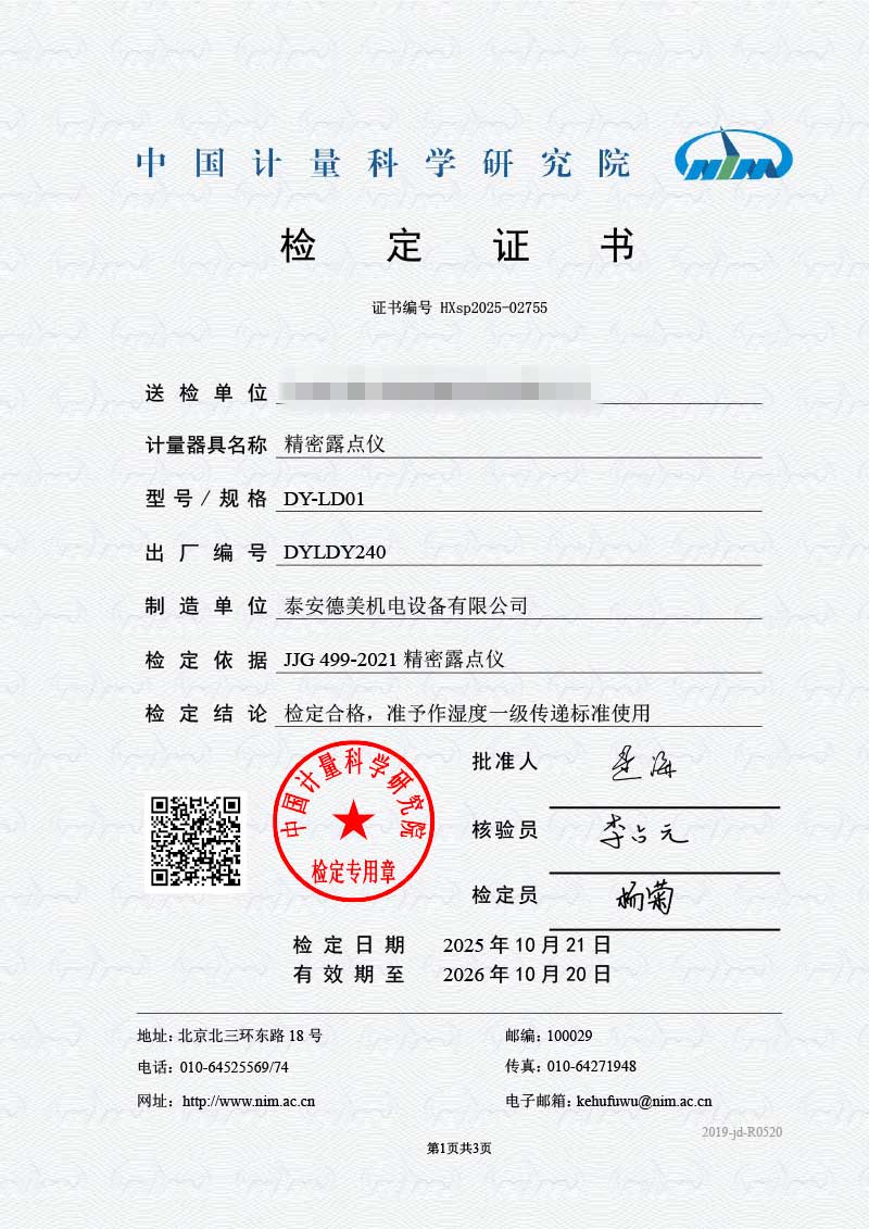 露點儀檢定證書 2025-10-30 本文被閱讀 1081 次