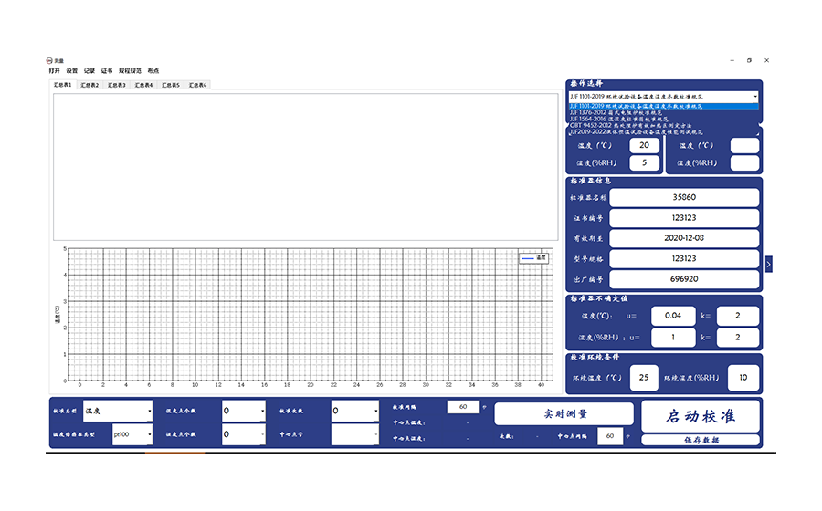 4)根據(jù)數(shù)據(jù)表格中的數(shù)據(jù),生成相對(duì)應(yīng)的記錄表信息跟證書信息??缮蓪?shí)時(shí)曲線。