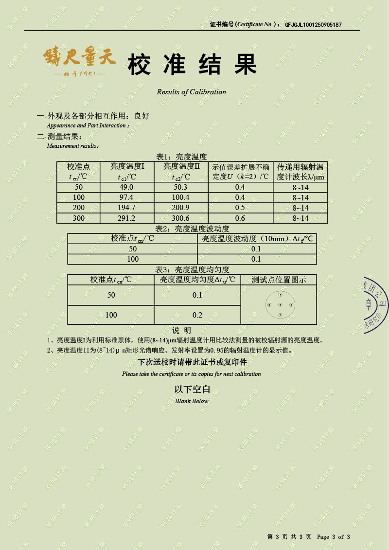 分體式面源黑體輻射源(室溫+5-300℃)校準(zhǔn)證書 2025-9-12 本文被閱讀 2013 次