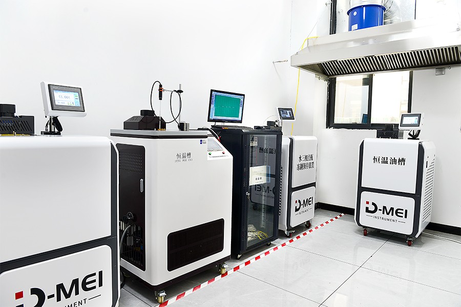 制冷恒溫槽主要是由制冷系統(tǒng)、加熱系統(tǒng)、控溫系統(tǒng)、攪拌系統(tǒng)所組成。槽體分混合區(qū)和工作區(qū)。在混合區(qū)內(nèi)由制冷系統(tǒng)產(chǎn)生的冷量通過蒸發(fā)器使槽內(nèi)液體(介質(zhì))降溫,而控溫系統(tǒng)則根據(jù)傳感器測得的溫度來控制加熱器工作,然后經(jīng)過攪拌系統(tǒng)的強(qiáng)烈攪拌充分均勻混合后的液體(介質(zhì))送入極少受外界干擾的工作區(qū)。從而獲得一個(gè)溫度穩(wěn)定,溫場均勻的液體空間。