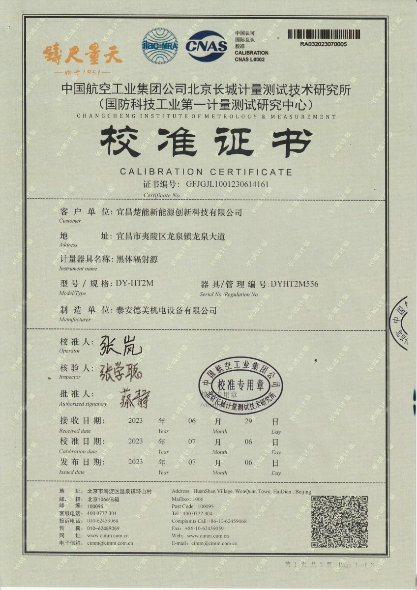 | 上一條:孝感楚能新能源創(chuàng)新科技有限公司-黑體輻射源 | 下一條:高精度制冷恒溫槽(-80~100℃)校準(zhǔn)證書 |