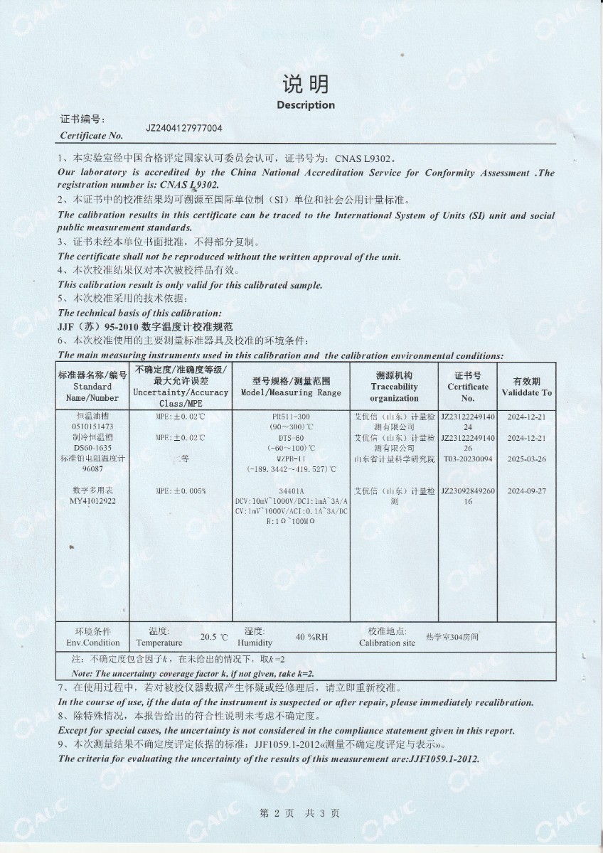 | 上一條:便攜式恒溫油槽校準(zhǔn)證書(shū) | 下一條:高精度制冷恒溫槽(-80~100℃)校準(zhǔn)證書(shū) |