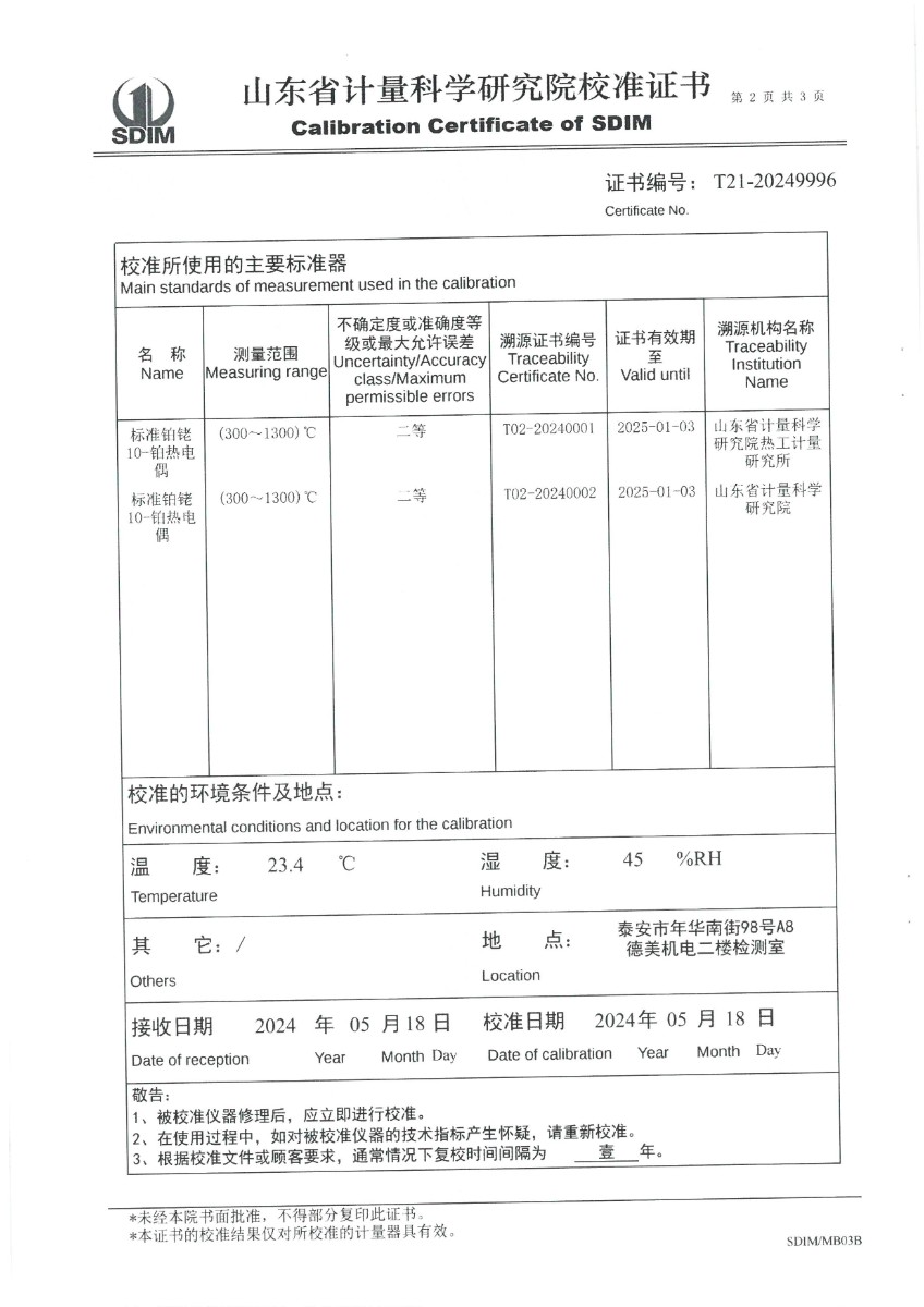 熱電偶檢定爐校準證書 2024-5-25 本文被閱讀 6585 次