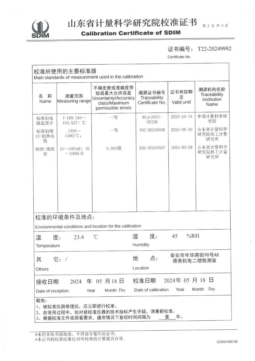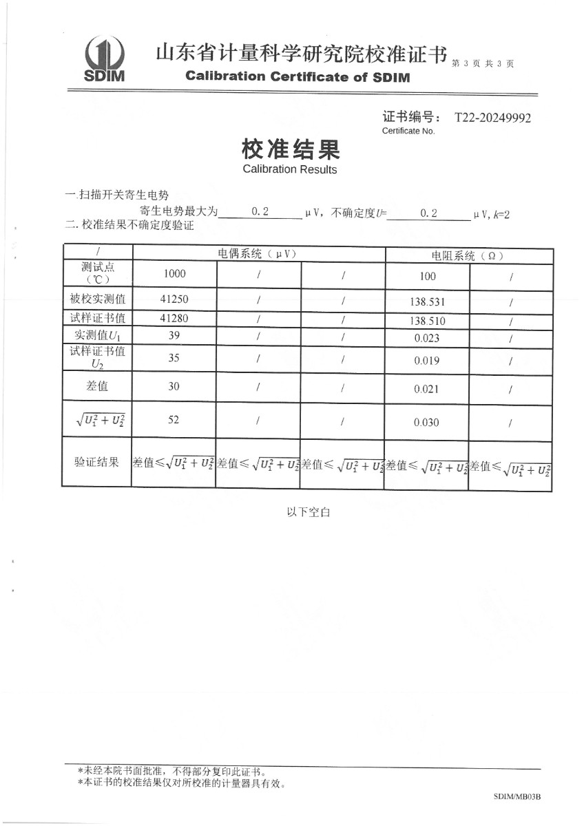 | 上一條:熱電偶檢定爐校準(zhǔn)證書 | 下一條:高精度制冷恒溫槽(-80~100℃)校準(zhǔn)證書 |