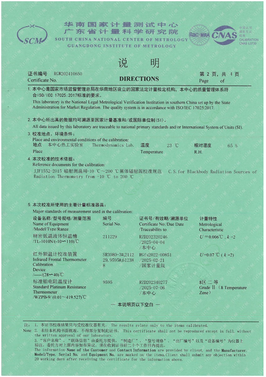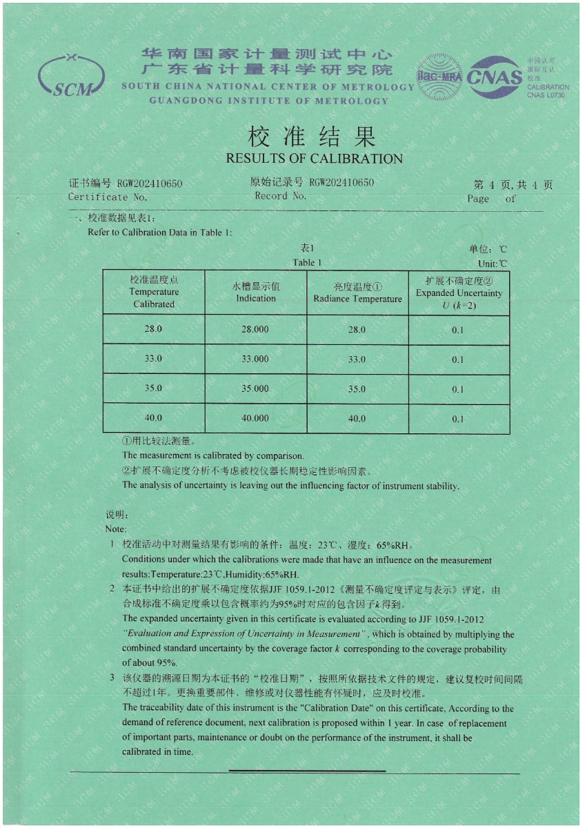 額溫空腔(黑體輻射源)校準證書 2024-5-27 本文被閱讀 6514 次