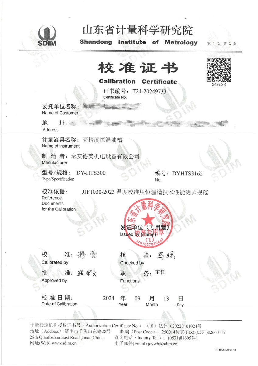 高精度恒溫油槽(70~300)℃校準(zhǔn)證書 2024-9-25 本文被閱讀 7264 次