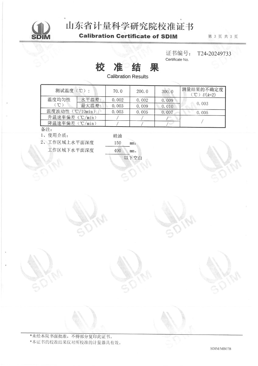 高精度恒溫油槽(70~300)℃校準(zhǔn)證書