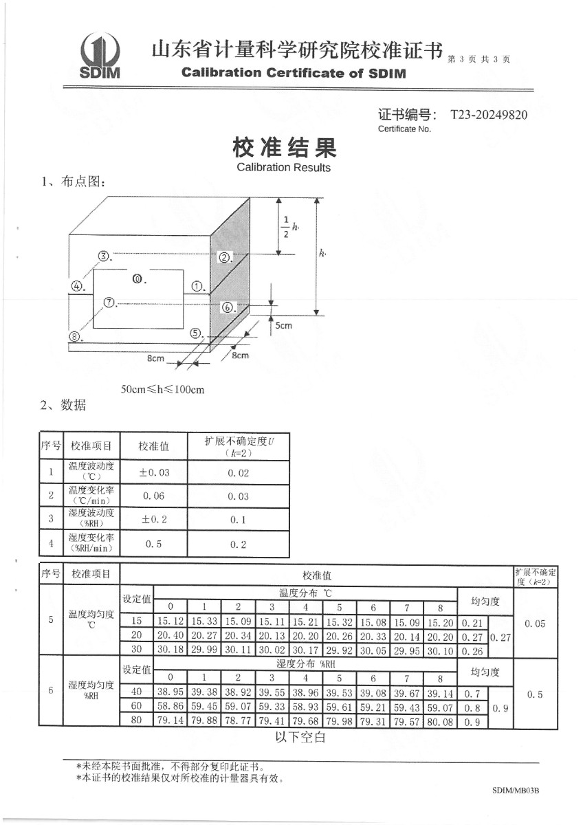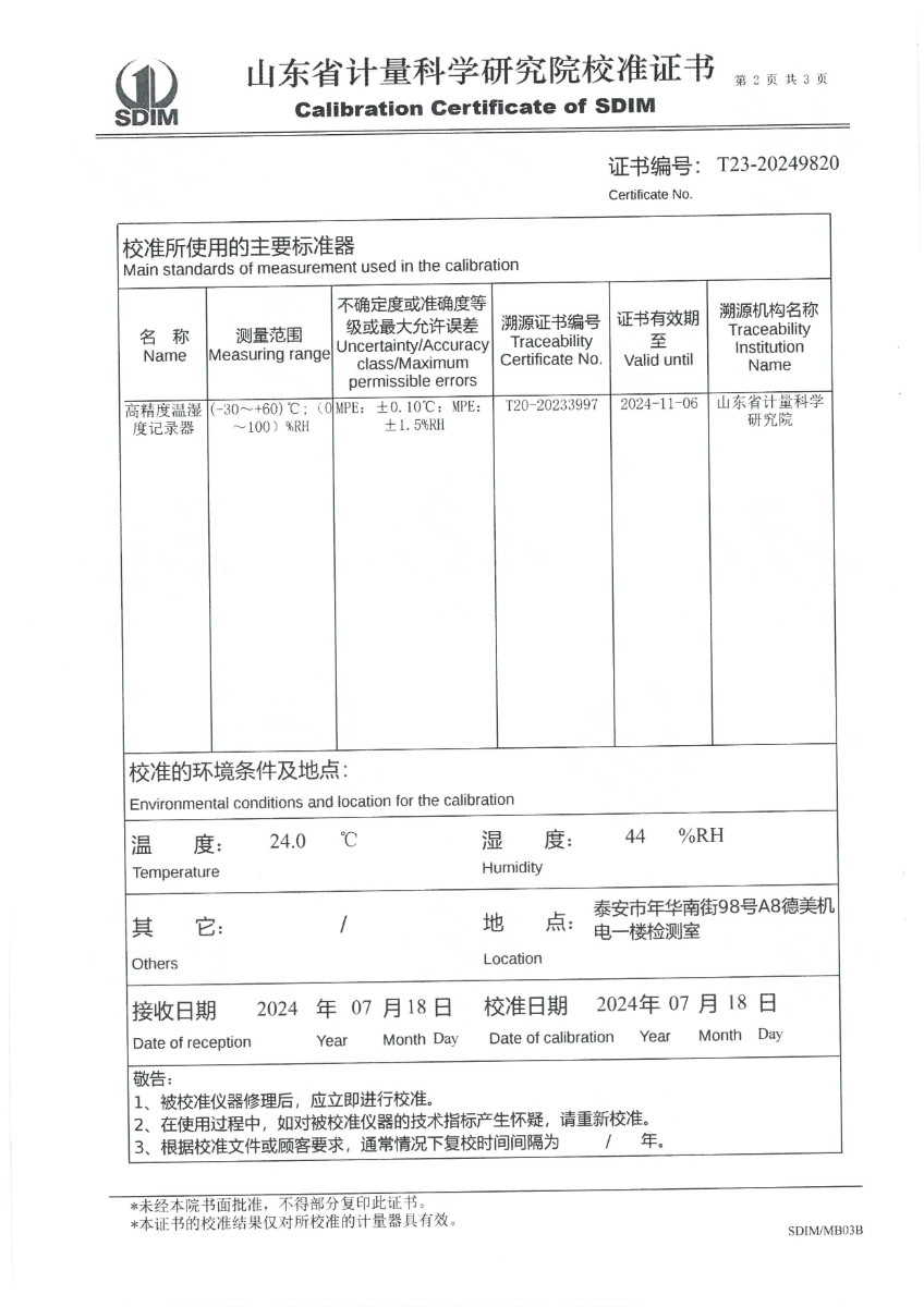 溫濕度檢定箱(-20~70℃)校準證書 2024-7-20 本文被閱讀 7903 次
