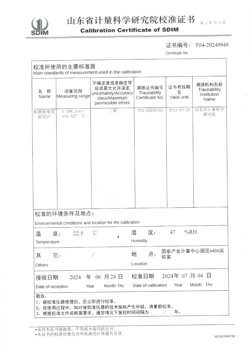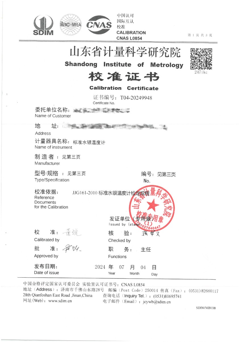 | 上一條:溫濕度檢定箱(-20~70℃)校準(zhǔn)證書 | 下一條:高精度制冷恒溫槽(-80~100℃)校準(zhǔn)證書 |