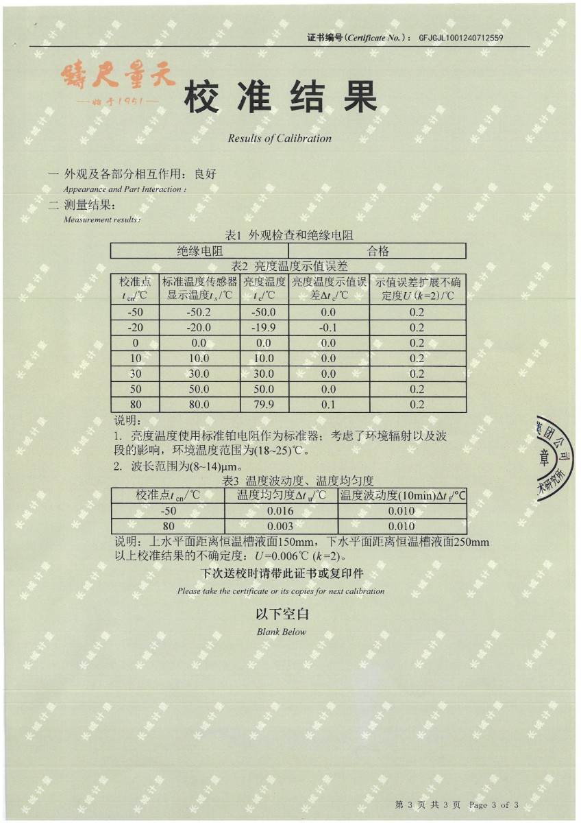 | 上一條:標(biāo)準(zhǔn)水銀溫度計(jì)校準(zhǔn)證書(shū) | 下一條:高精度制冷恒溫槽(-80~100℃)校準(zhǔn)證書(shū) |