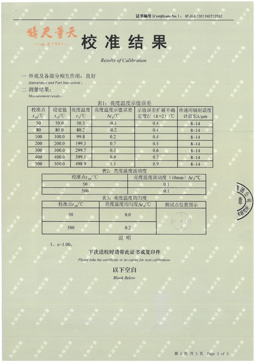 腔式黑體(50~500℃)校準證書 2024-7-29 本文被閱讀 8101 次