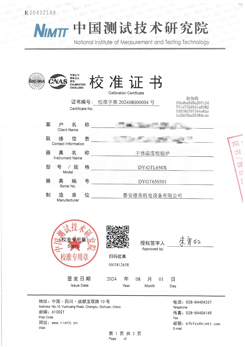 上一條:干體爐300(室溫+5℃~650℃)校準(zhǔn)證書(shū)下一條:高精度制冷恒溫槽(-80~100℃)校準(zhǔn)證書(shū)
