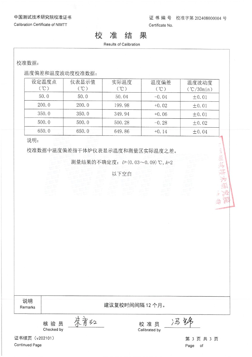 干體爐301(室溫+5℃~650℃)校準(zhǔn)證書(shū) 2024-8-5 本文被閱讀 7530 次