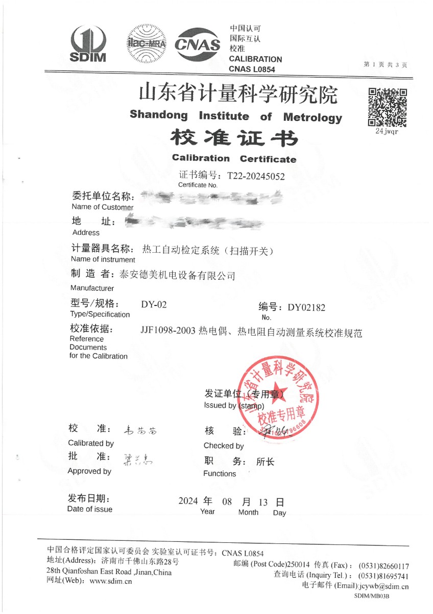 | 上一條:表面溫度計(jì)(室溫+5~400℃)校準(zhǔn)證書(shū) | 下一條:高精度制冷恒溫槽(-80~100℃)校準(zhǔn)證書(shū) |