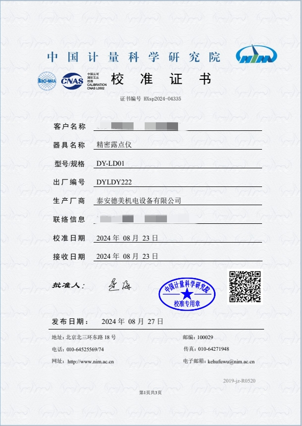 露點(diǎn)儀校準(zhǔn)證書 2024-9-3 本文被閱讀 7757 次