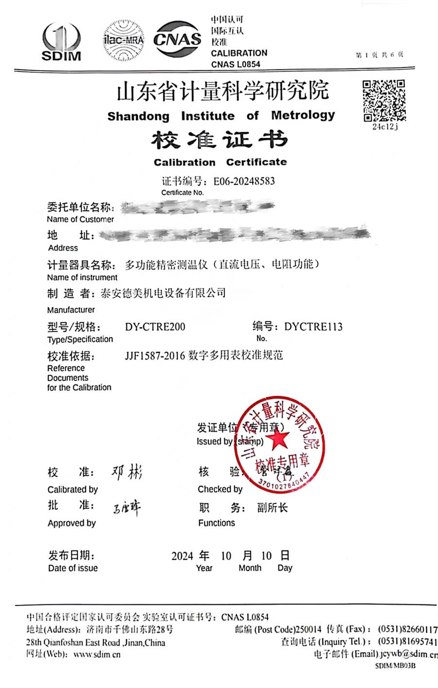 多功能測溫儀校準證書 2024-10-11 本文被閱讀 8489 次