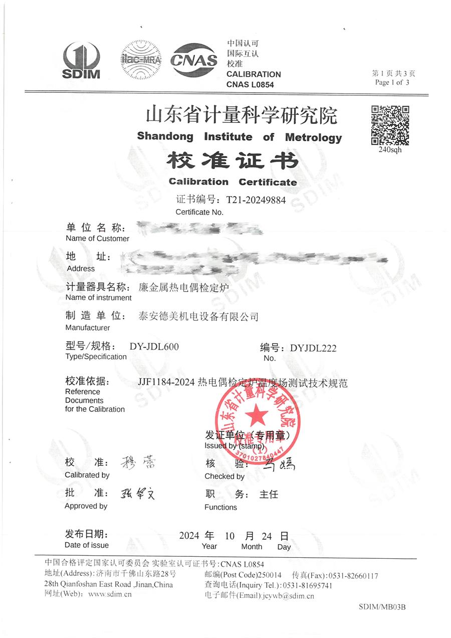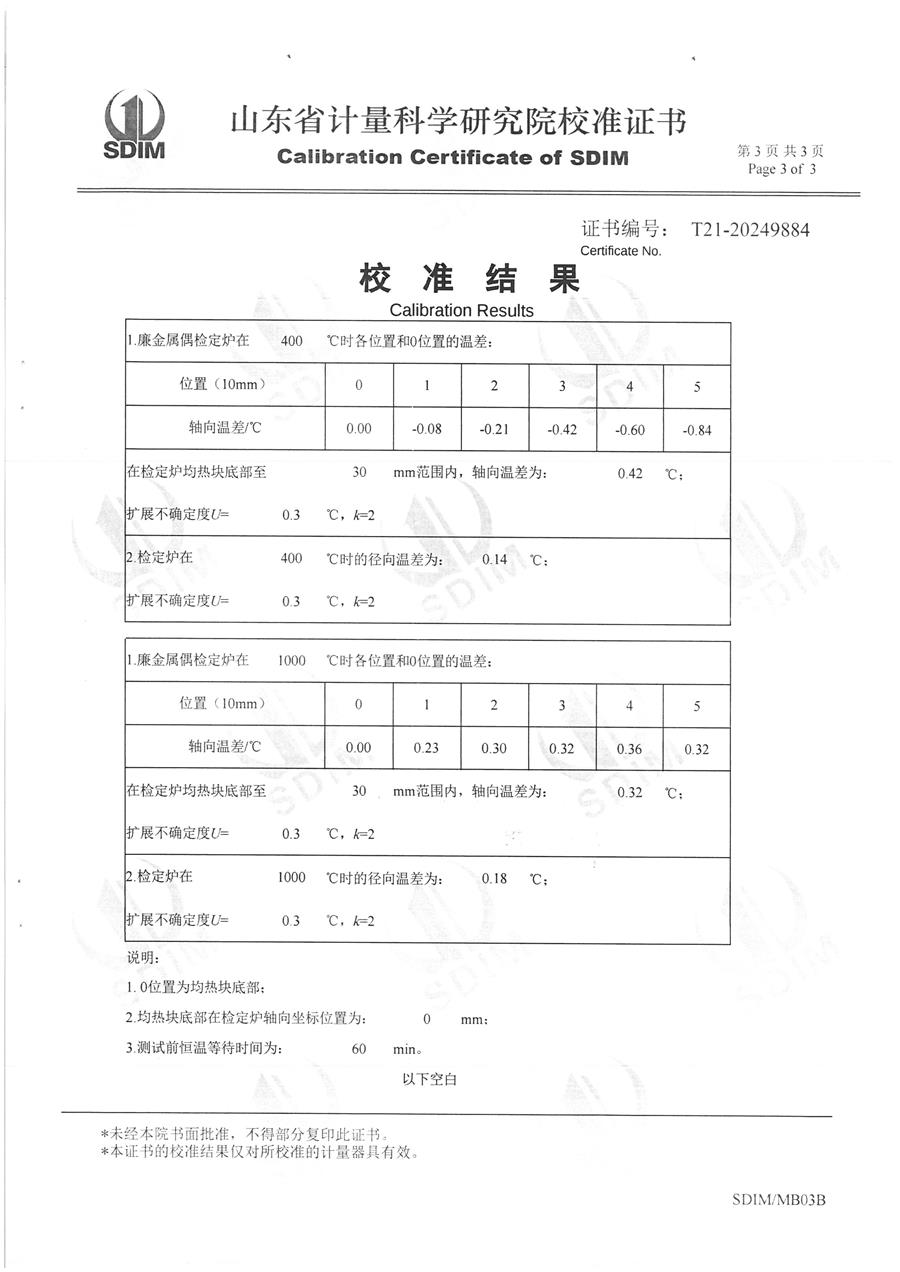廉金屬熱電偶檢定爐(300-1200℃)校準證書 2024-11-2 本文被閱讀 6756 次