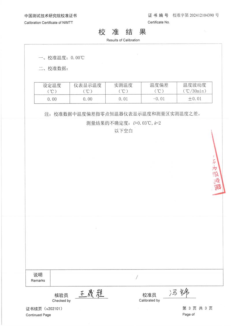 | 上一條:低溫浴式面源黑體爐(-50-80℃)校準(zhǔn)證書(shū) | 下一條:高精度制冷恒溫槽(-80~100℃)校準(zhǔn)證書(shū) |