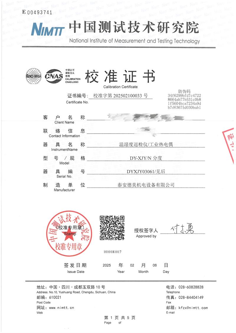 | 上一條:DY-HT80M-S便攜式雙面面源黑體輻射源(①面:10℃-40℃ ②面:室溫+5℃-80℃) | 下一條:高精度制冷恒溫槽(-80~100℃)校準(zhǔn)證書 |