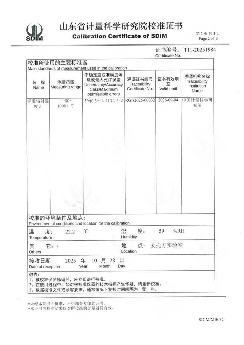 黑體輻射源(0-60°C)校準證書 2025-11-5 本文被閱讀 933 次