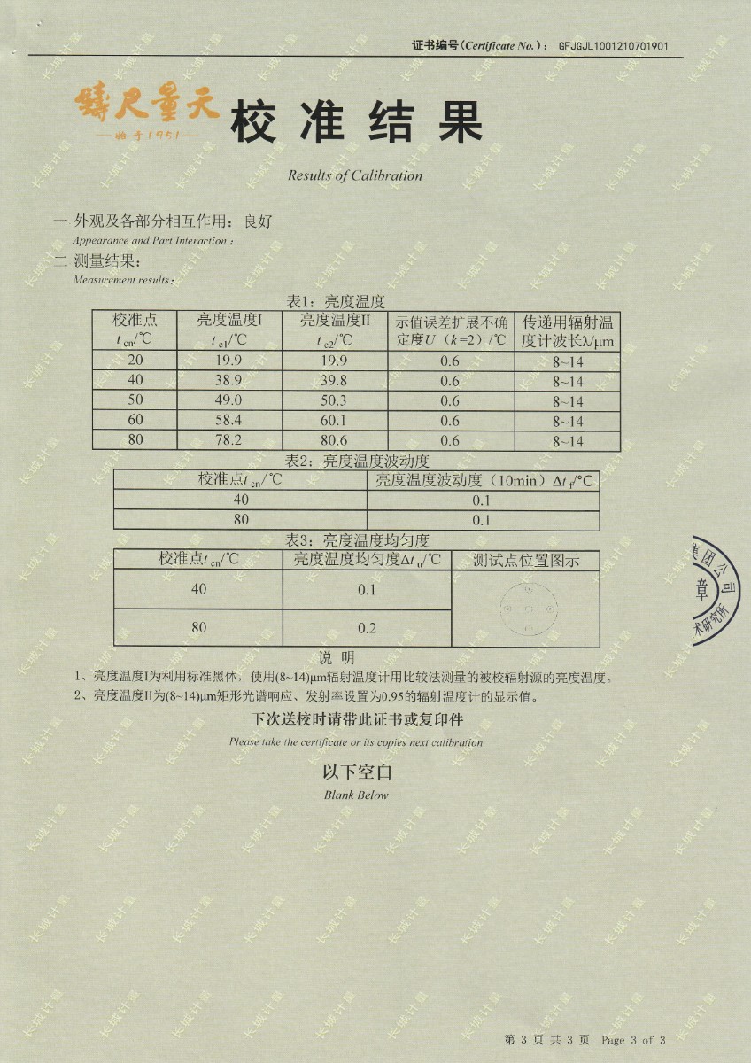 | 上一條:山東博測計(jì)量檢測技術(shù)有限公司-黑體輻射源 | 下一條:高精度制冷恒溫槽(-80~100℃)校準(zhǔn)證書 |