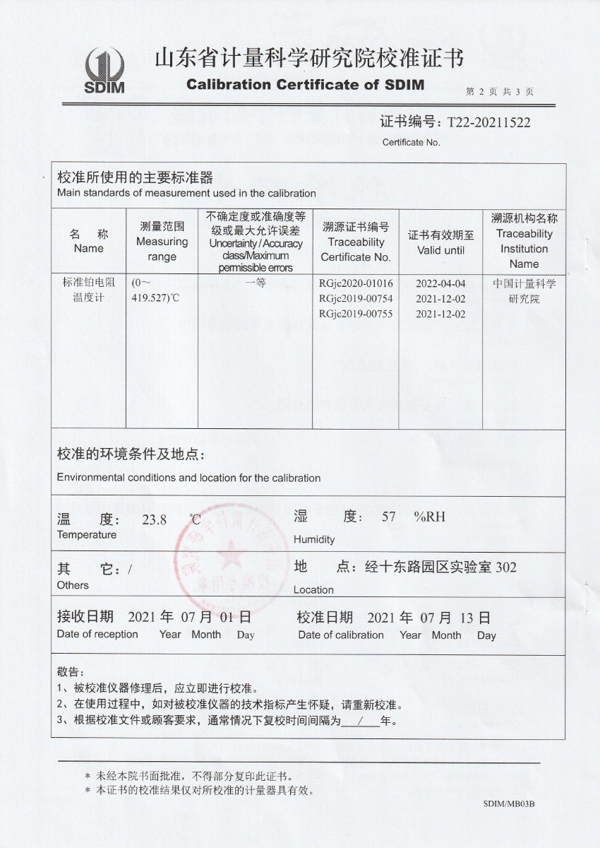 | 上一條:中國核工業(yè)二三建設(shè)有限公司太平嶺項目部-三等金屬線紋尺 | 下一條:高精度制冷恒溫槽(-80~100℃)校準證書 |