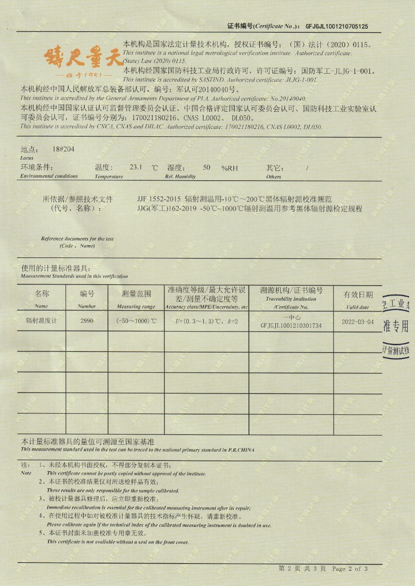 | 上一條:中國核工業(yè)二三建設(shè)有限公司太平嶺項目部-水三相點瓶 | 下一條:高精度制冷恒溫槽(-80~100℃)校準證書 |