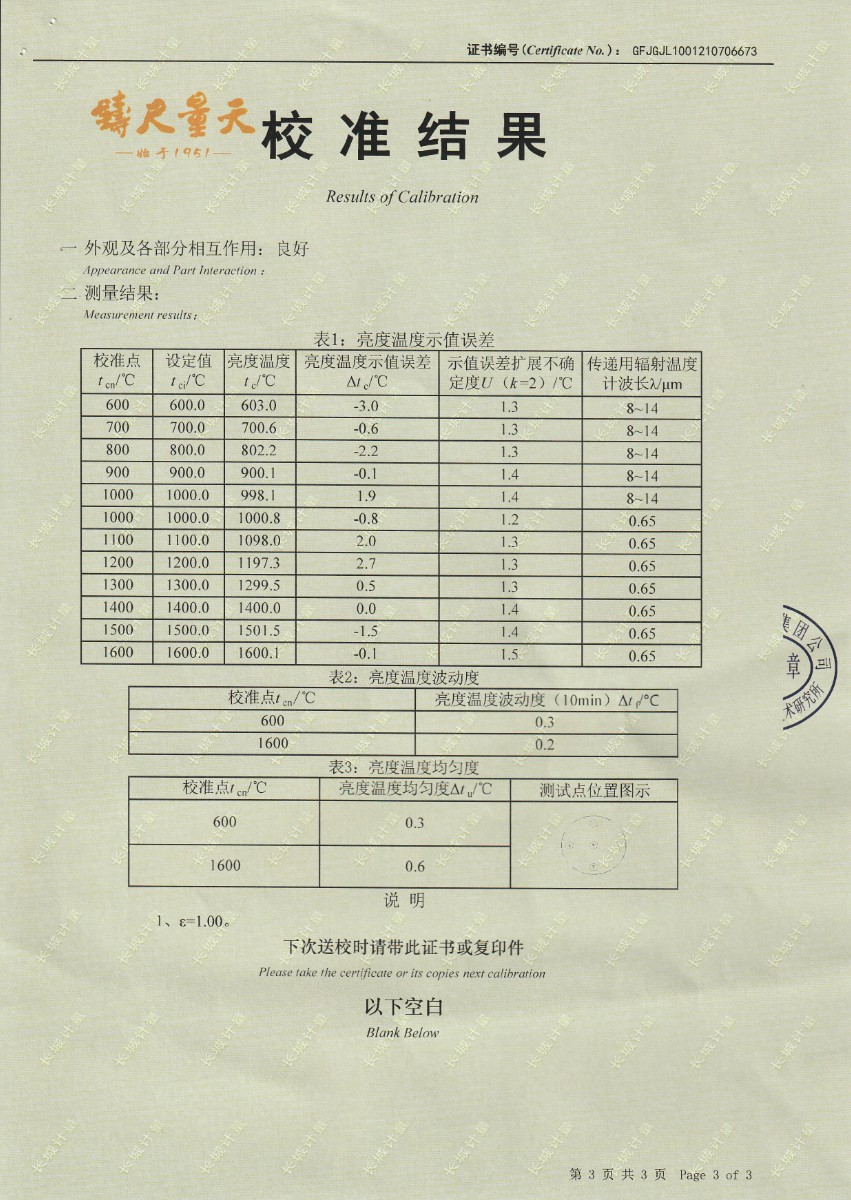 上一條:福建邁格林醫(yī)療科技有限公司-黑體輻射源下一條:高精度制冷恒溫槽(-80~100℃)校準證書
