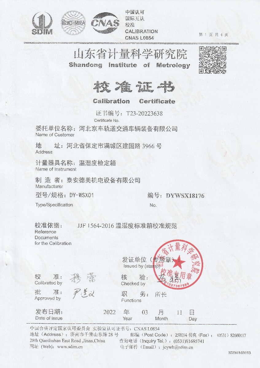 | 上一條:河北京車(chē)軌道交通車(chē)輛裝備有限公司-低電勢(shì)掃描開(kāi)關(guān) | 下一條:高精度制冷恒溫槽(-80~100℃)校準(zhǔn)證書(shū) |