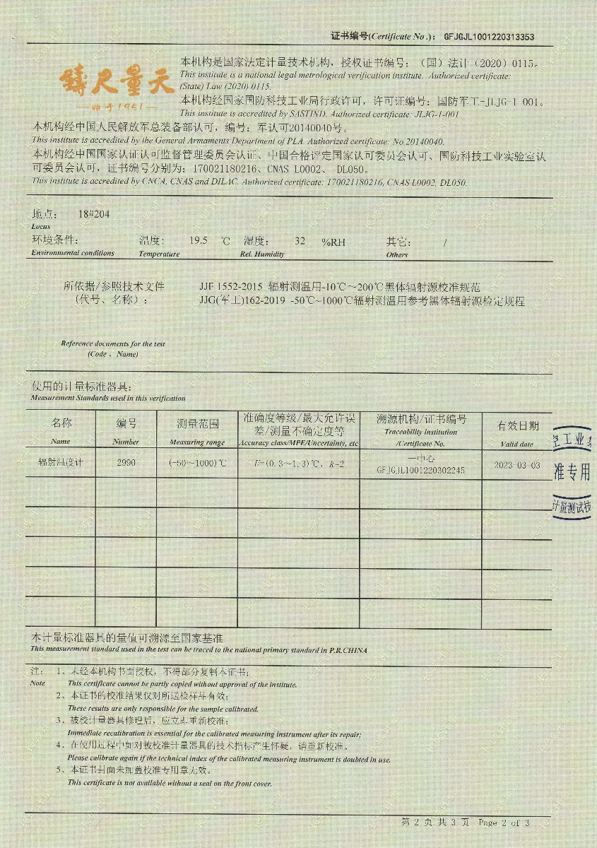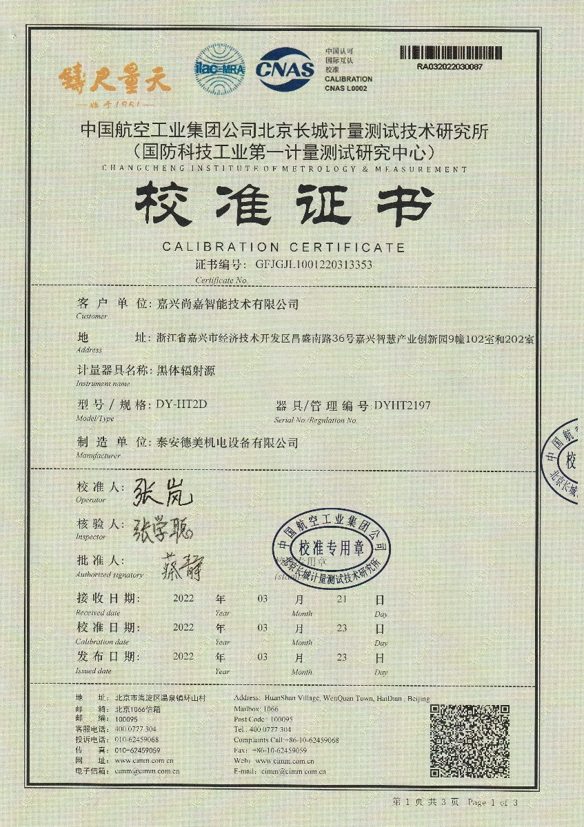 | 上一條:嘉興尚嘉智能技術(shù)有限公司-黑體輻射源(DY-HT1A) | 下一條:高精度制冷恒溫槽(-80~100℃)校準(zhǔn)證書(shū) |