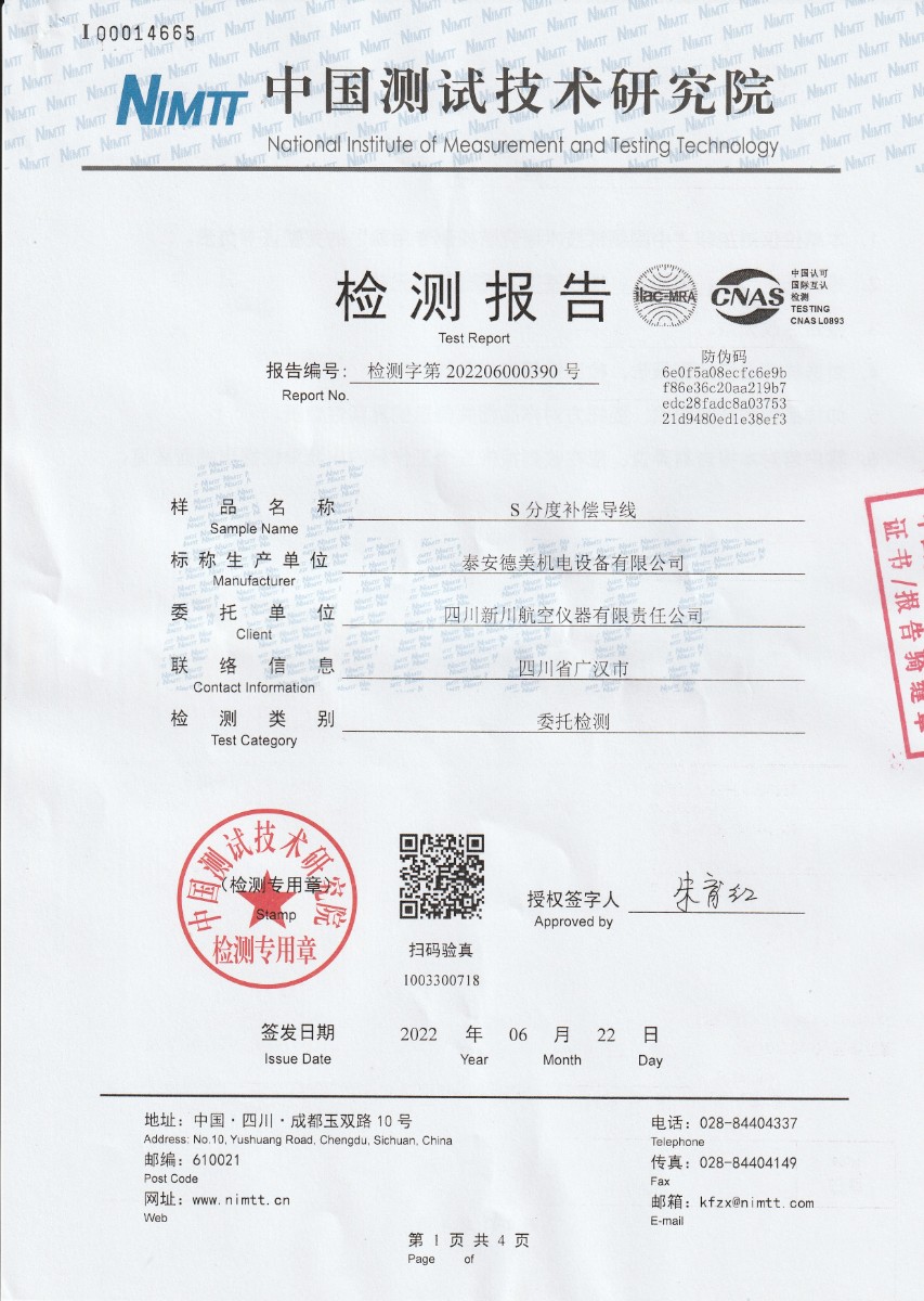 四川新川航空儀器有限責任公司-S分度補償導線 2022-7-5 本文被閱讀 14629 次