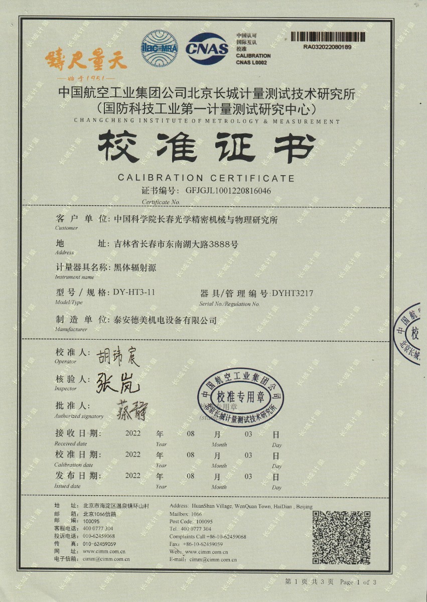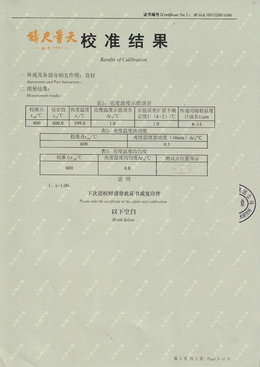上一條:中國科學院長春光學精密機械與物理研究所-黑體爐DY-HT3-2下一條:高精度制冷恒溫槽(-80~100℃)校準證書