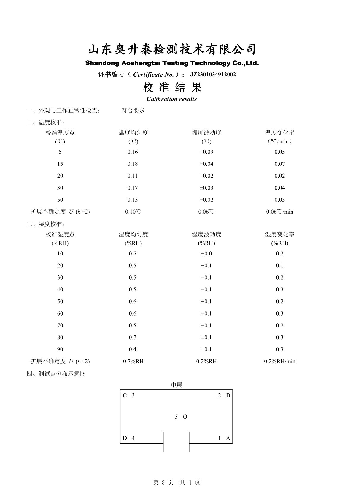 | 上一條:海峽富民生質(zhì)檢技術(shù)服務(wù)有限公司 溫濕度檢定箱校準(zhǔn)證書(1) | 下一條:高精度制冷恒溫槽(-80~100℃)校準(zhǔn)證書 |