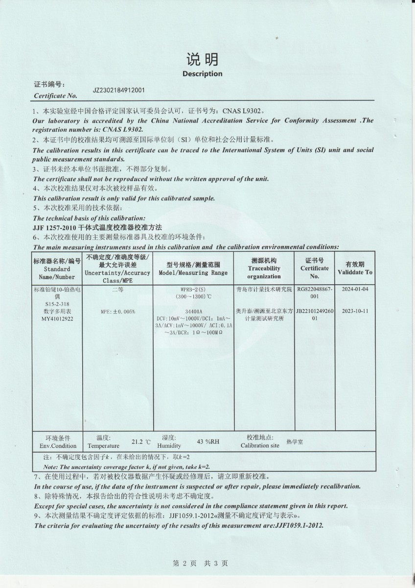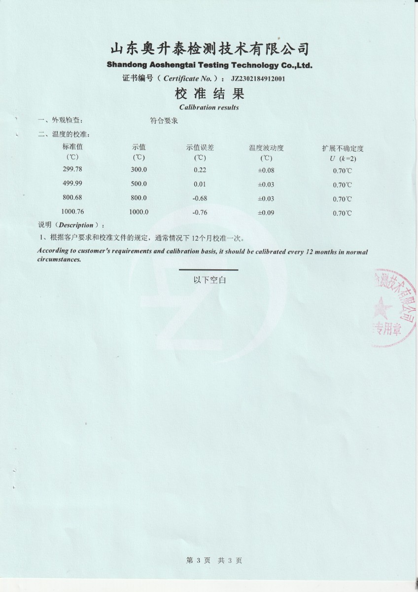 | 上一條:西安天元航空科技股份有限公司 零點(diǎn)恒溫器 校準(zhǔn)證書 | 下一條:高精度制冷恒溫槽(-80~100℃)校準(zhǔn)證書 |