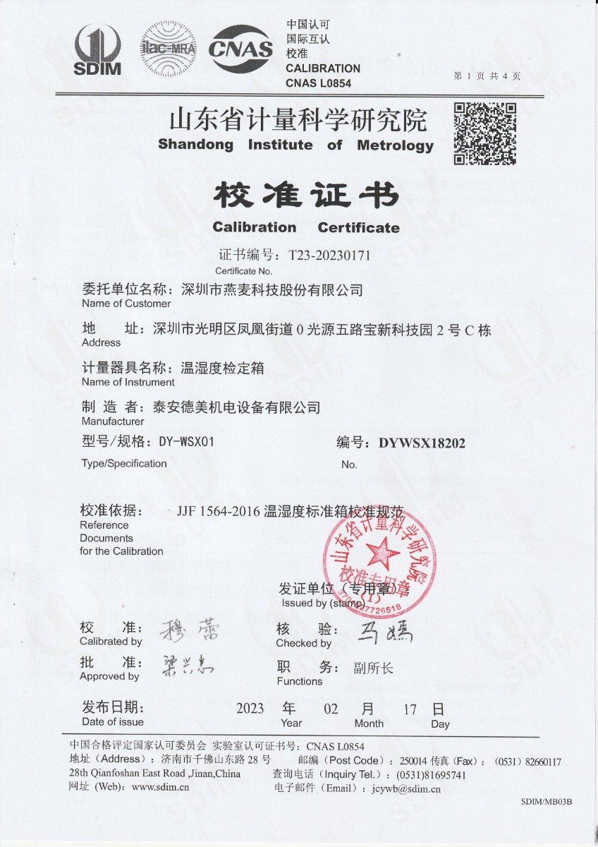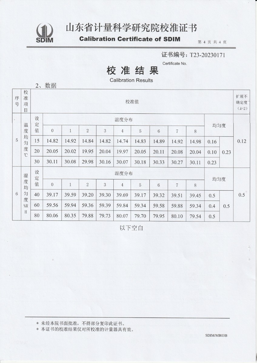 | 上一條:甘肅東興嘉宇新材料有限公司 干體溫度校驗(yàn)爐 校準(zhǔn)證書(shū)(2) | 下一條:溫濕度檢定箱校準(zhǔn)證書(shū) |