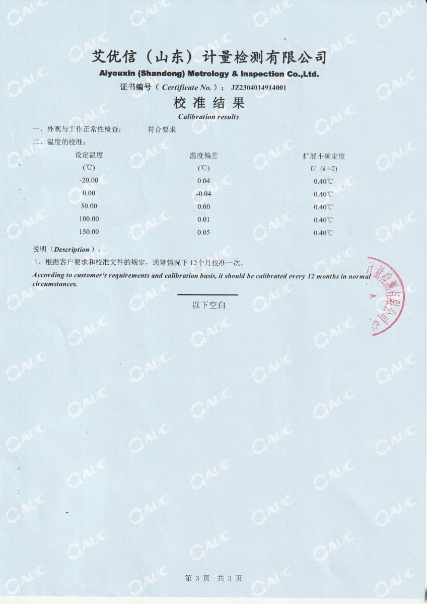 | 上一條:開封光利高科實(shí)業(yè)有限責(zé)任公司送變電公司 變壓器溫度計(jì)校驗(yàn)裝置 校準(zhǔn)證書(2) | 下一條:高精度制冷恒溫槽(-80~100℃)校準(zhǔn)證書 |