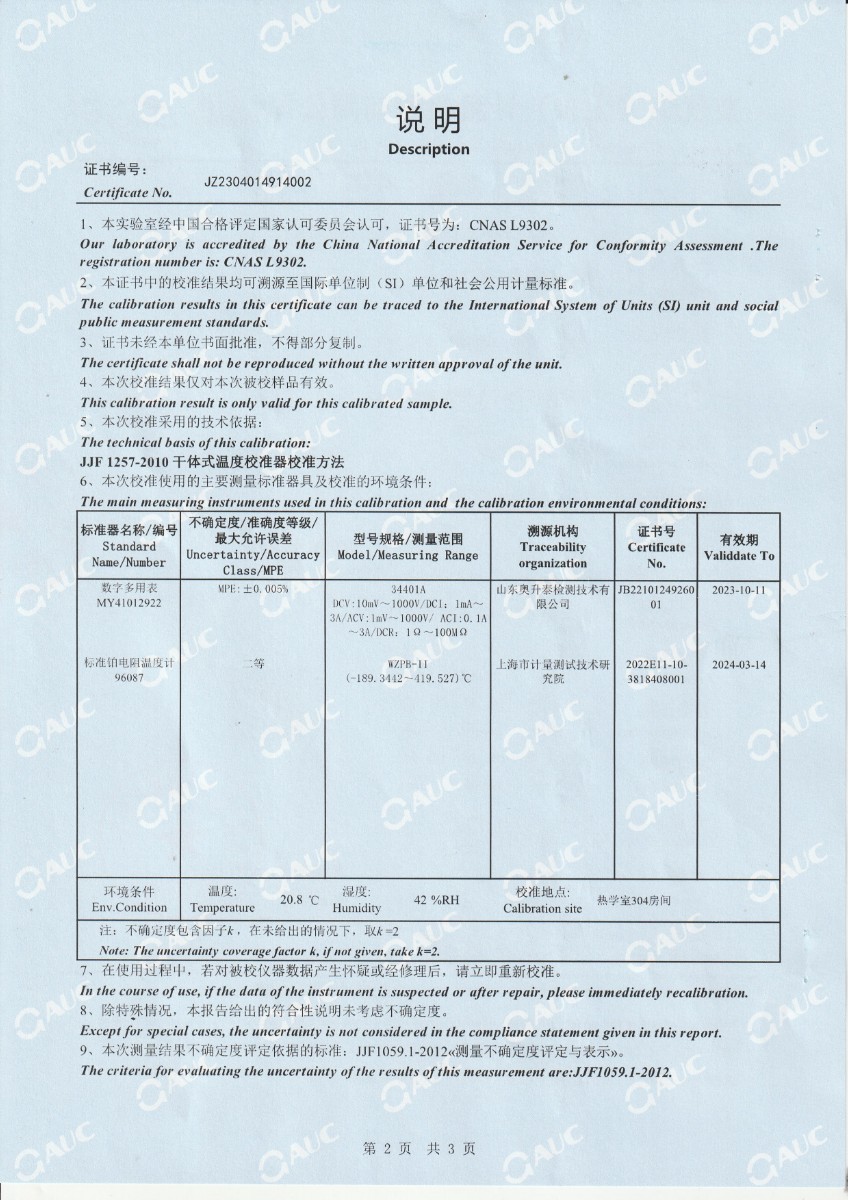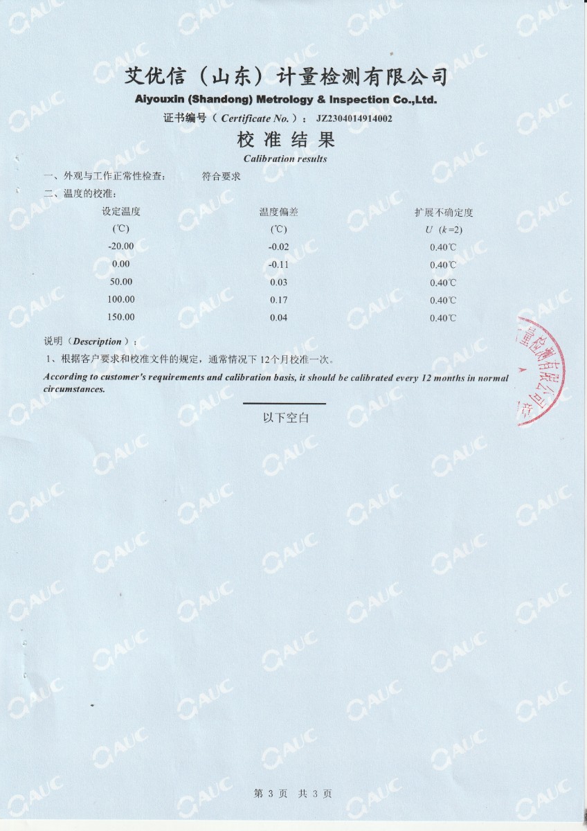 | 上一條:沈陽吉地安風(fēng)電科技有限公司 干體溫度校驗(yàn)爐 校準(zhǔn)證書(1) | 下一條:溫濕度檢定箱校準(zhǔn)證書 |