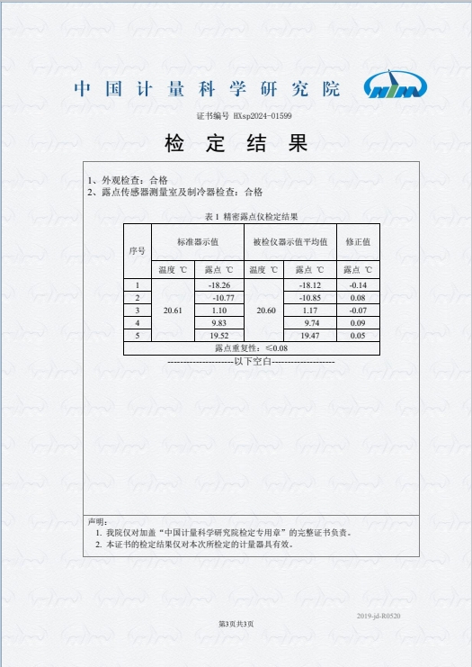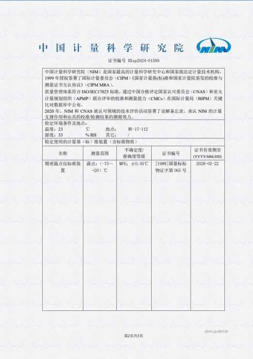 冷鏡式露點儀(-20-95℃)檢定證書 2024-6-17 本文被閱讀 7256 次