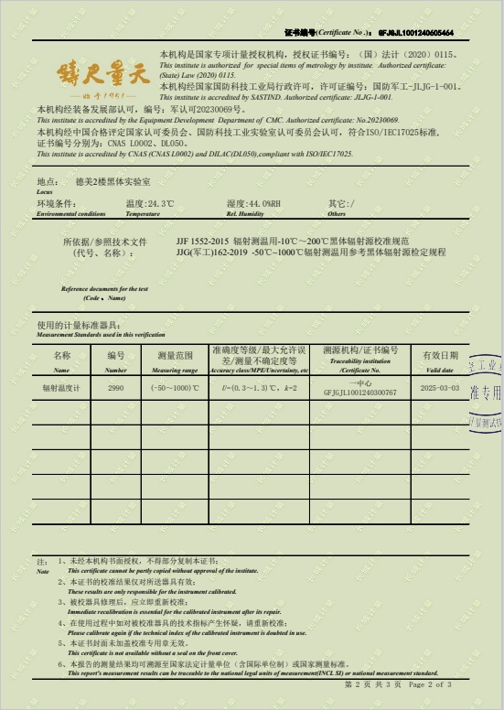 黑體輻射源(50-700℃)304所校準證書 2024-6-18 本文被閱讀 7115 次