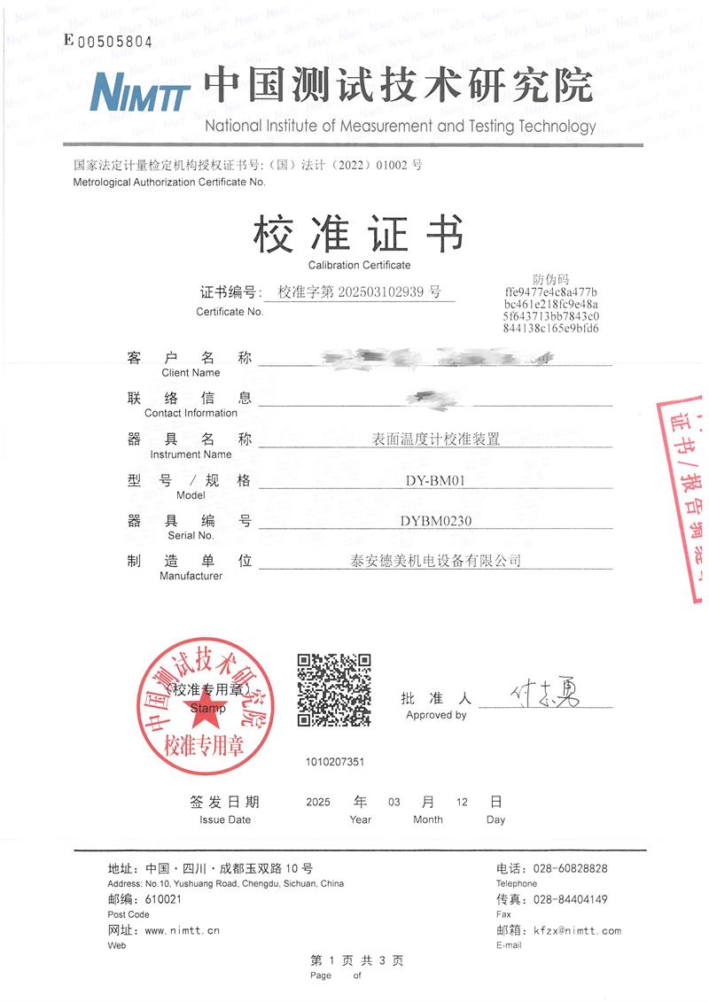 表面溫度計校準裝置(室溫+5~400℃)校準證書 2025-3-14 本文被閱讀 3978 次