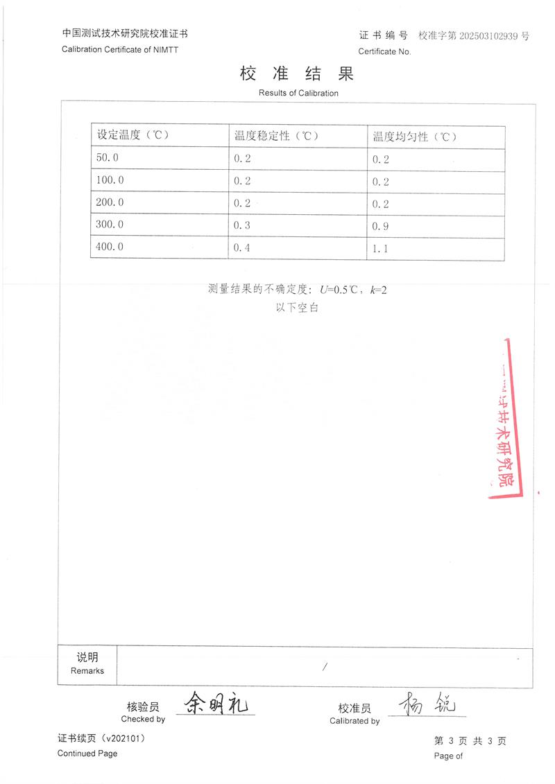 上一條:中溫黑體爐(50~700℃)校準證書下一條:高精度制冷恒溫槽(-80~100℃)校準證書