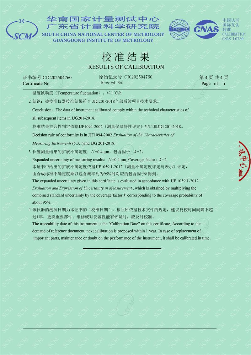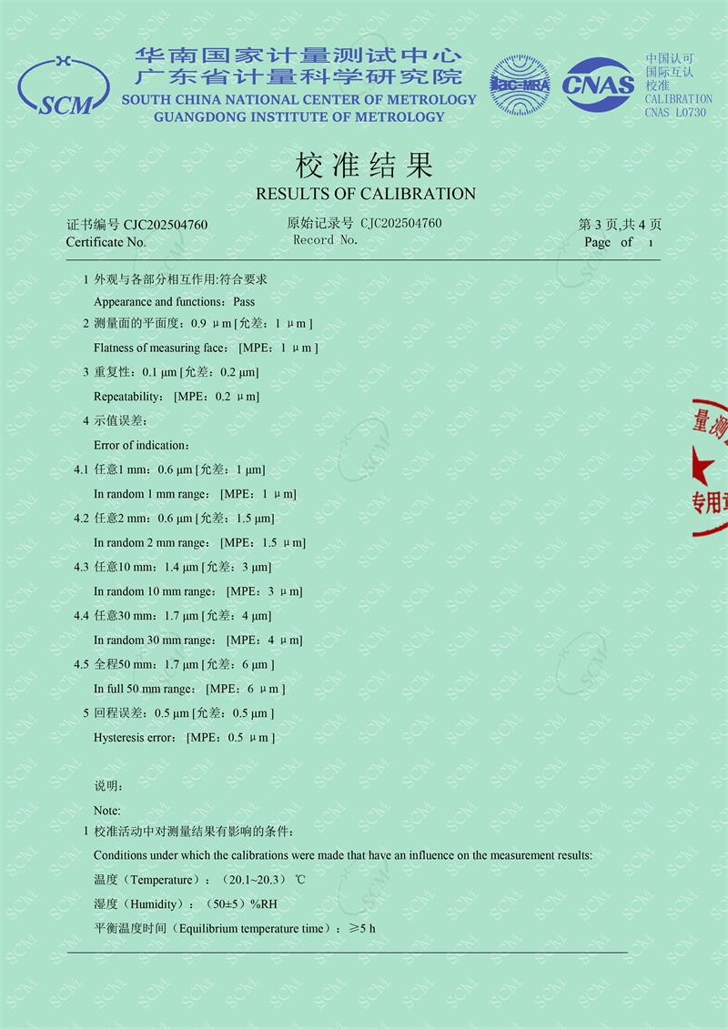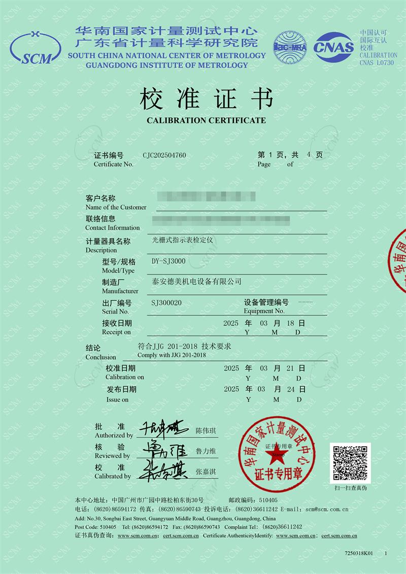 光柵式指示表檢定儀校準證書 2025-4-3 本文被閱讀 4085 次