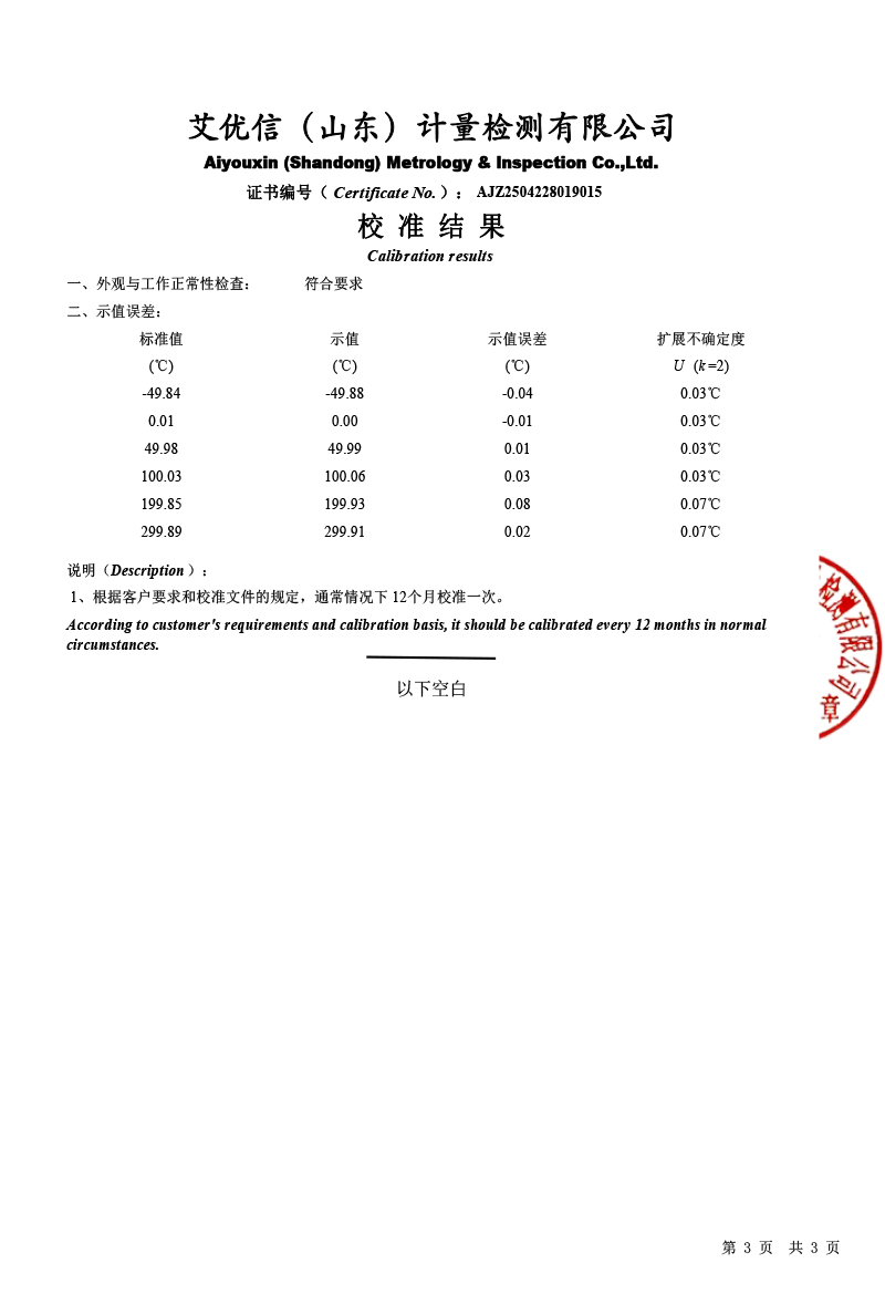 | 上一條:DY-HT1M-150D超低溫面源黑體爐(輻射面150mm) | 下一條:高精度制冷恒溫槽(-80~100℃)校準(zhǔn)證書 |