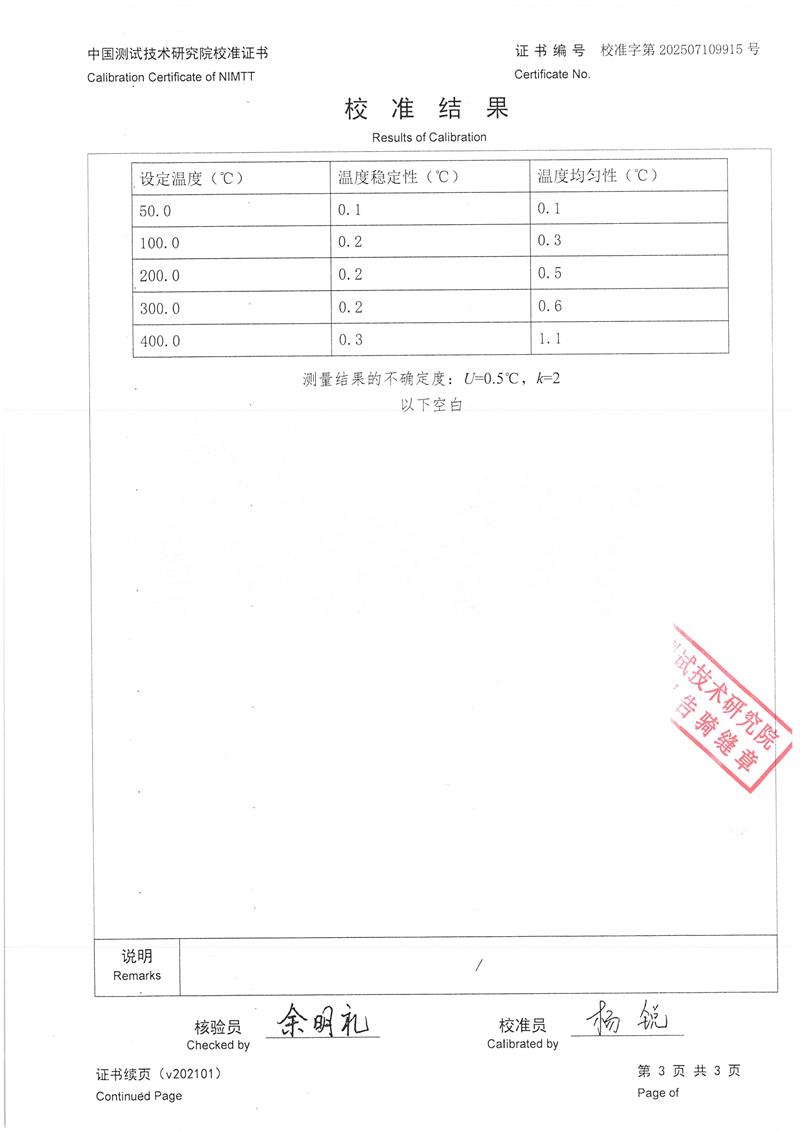 | 上一條:高精度低溫黑體(-10-100℃)校準(zhǔn)證書 | 下一條:高精度制冷恒溫槽(-80~100℃)校準(zhǔn)證書 |