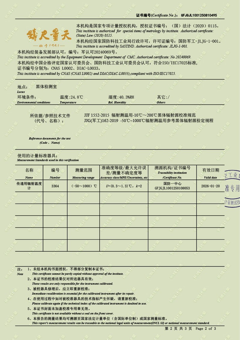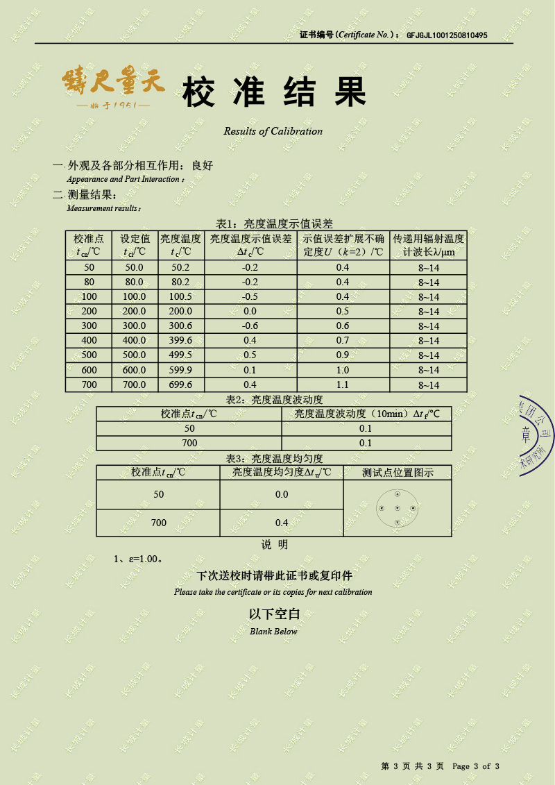腔式黑體輻射源(50-700℃)校準證書 2025-9-3 本文被閱讀 2382 次