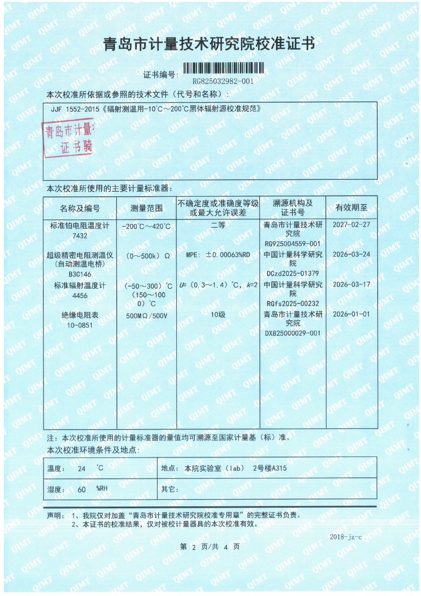 額溫計黑體空腔-校準證書 2025-9-23 本文被閱讀 2191 次